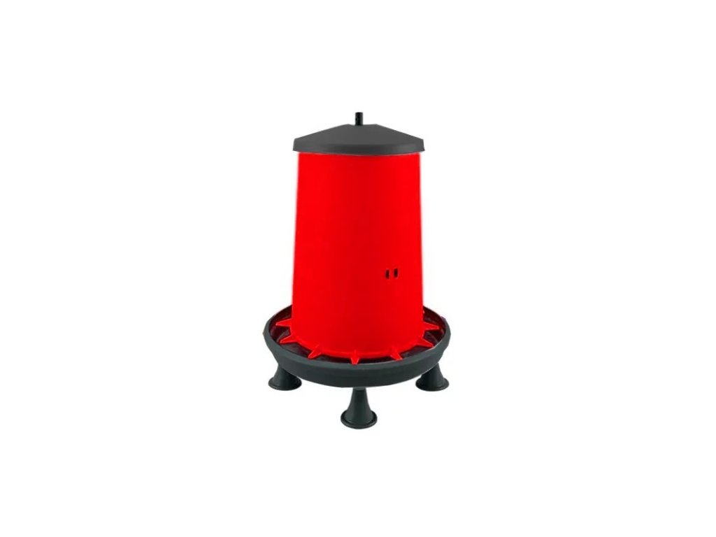 Automatické závěsné krmítko pro drůbež s plastovým středem a nožičkami je praktické a hygienické řešení pro krmení slepic, kuřat a jiné drůbeže. Díky plastové středové tyči lze snadno regulovat výšku dávkování krmiva podle potřeby chovu.