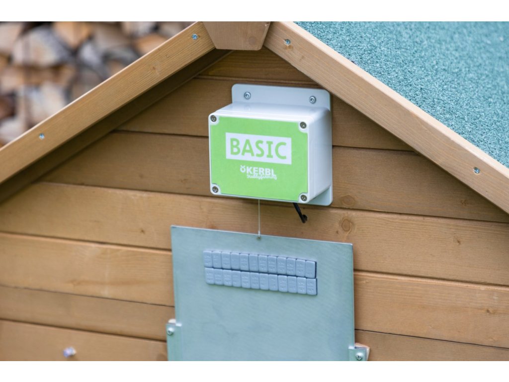 Automatická jednotka Kerbl Basic umožňuje denním světlem řízené otevírání a zavírání dvířek kurníku. Jednoduché řešení pro všechny chovatele, kteří chtějí zajistit ochranu slepic bez nutnosti vlastní přítomnosti.