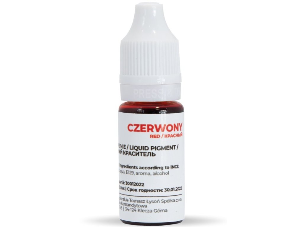 Barvivo mýdlové červené 10 ml je koncentrované glycerinové barvivo určené pro výrobu domácích mýdel, ideální jako barva do mýdla či mýdlové barvivo pro kreativní sady a ručně vyráběné výrobky obsahující glycerinový mýdlový základ, přírodní med a včelí vosk.