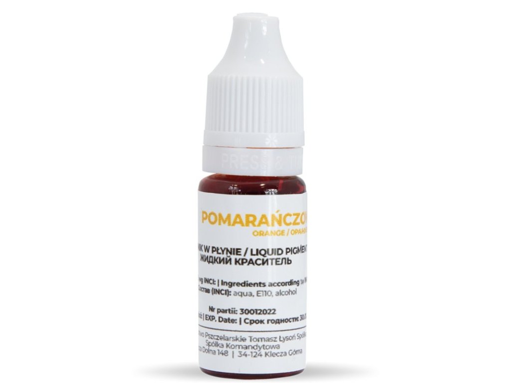 Barvivo mýdlové oranžové 10 ml je koncentrované glycerinové barvivo vhodné jako barva do mýdla a mýdlové barvivo pro domácí i profesionální výrobu mýdel; ideální doplněk do kreativních boxů s glycerinovým mýdlovým základem, přírodním medem a včelím voskem pro tvorbu dekorativních a zdraví podporujících výrobků.
