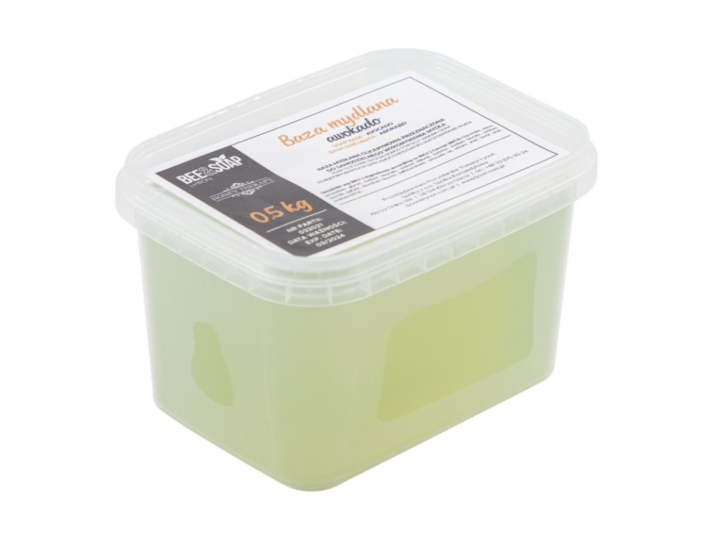 Báze mýdlová z avokádového oleje 0,5 kg představuje kvalitní, jemnou a krémovou hmota na výrobu mýdla vhodná pro chovatele včelaře a tvůrčí lidi vyrábějící svíčky, kteří hledají přírodní alternativu s výživnými složkami avokádového oleje; popis produktu: Báze mýdlová z avokádového oleje 0,5 kg nabízí vynikající lesk, dobrou stabilitu pěny a snadné zpracování při výrobě ručně dělaného mýdla a dekorativních výrobků.
