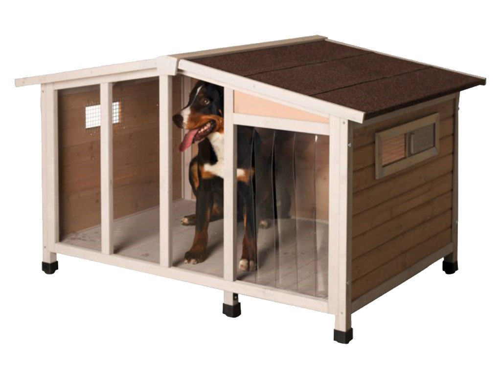 - Vchod psí boudy je dostatečně prostorný a chráněný lamelovým závěsem proti větru a nepřízni počasí. Vchod je dostatečně prostorný, takže se pes může pohodlně pohybovat dovnitř a ven z boudy.