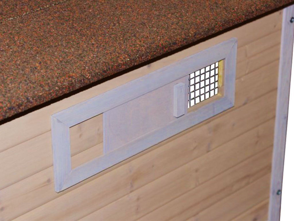 - Nadčasová průhledná stěna z plexiskla poskytne Vašemu psovi přehled o okolí a zároveň jej chrání před nepřízní počasí. Bouda má nejenom přední průhledné okno, ale také dvě malé zašupovací okénka po stranách boudy pro optimální proudění vzduchu.