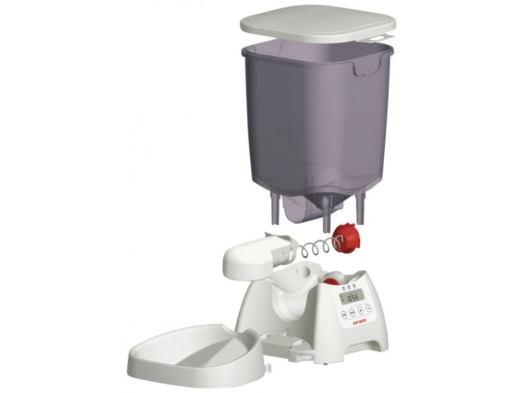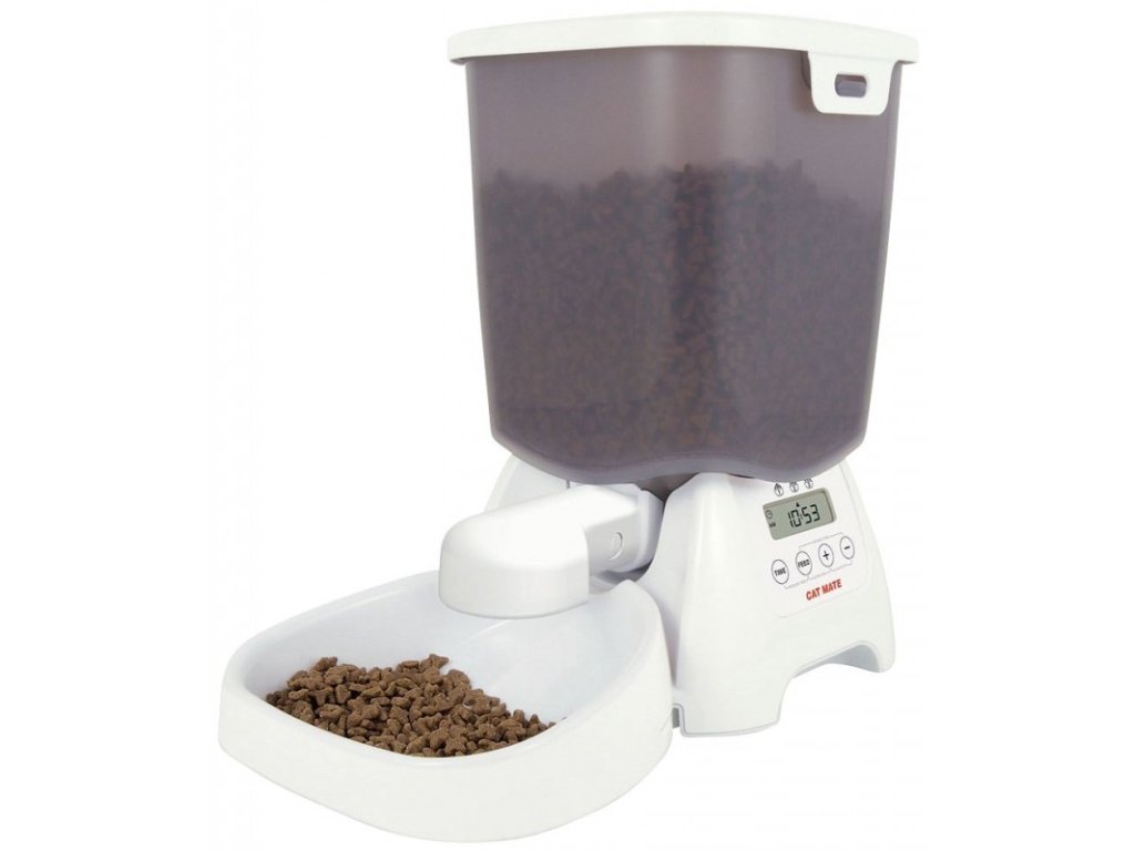 Automatické krmítko na suché krmivo pro psy a kočky umožňuje manuální nebo automatické přesné dávkování krmiv, což má pozitivní vliv na jejich trávicí cyklus a tím také na celkový zdravotní stav. Dávkovač krmiva Cat Mate je vybaven také režimem častého dávkování, čímž je vhodný také pro kočky a psy trpící nadváhou.