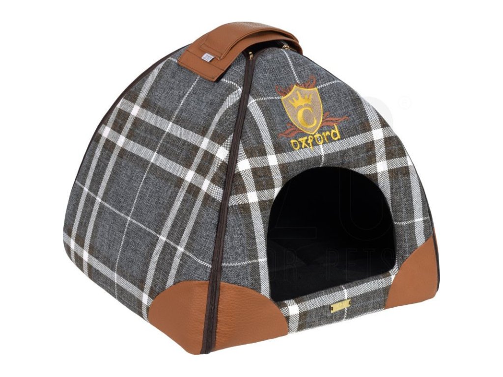Elegantní kukaň pro psa a kočku CAZO řady OXFORD je malá látková bouda v moderním designu pro malá plemena psů, či koček. Pelíšek pro psa poskytuje zvířeti pocit bezpečí a lze jej využít jako pelíšek na cesty nebo na doma. Boudička pro psa je díky 4 zipům snadno a rychle složitelná a přípravená na cesty.