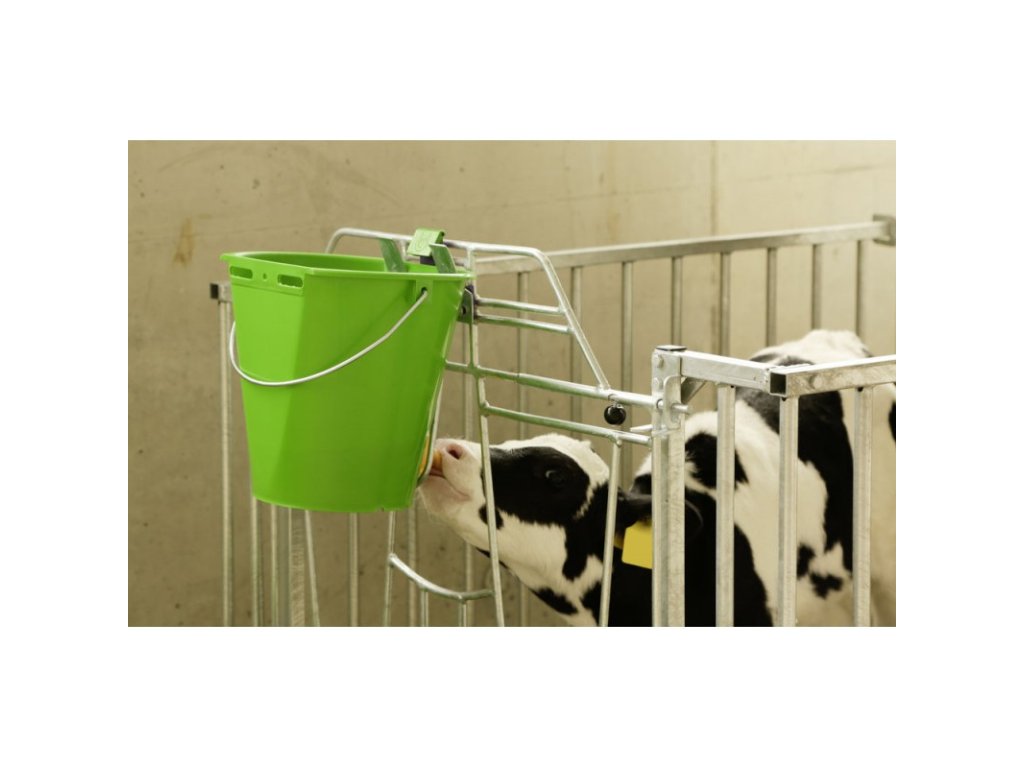 Držák k napájecímu kbelíku se používá k upevnění napájecích kbelíků na ohrádku bud pro telata. Držák je vyrobený z kvalitní pozinkované oceli.