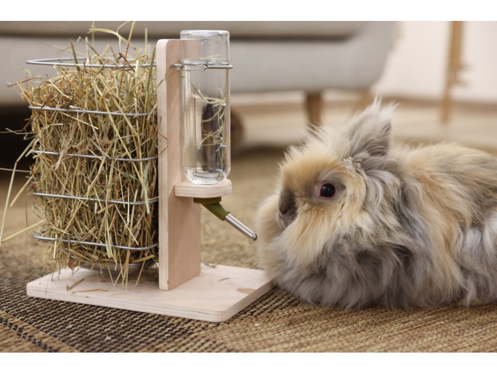 Držák na láhev a stojan na seno pro králíky, 2v1, 22,5 x 15,5 x 27 cm
