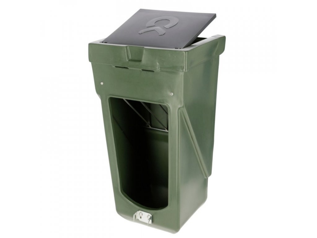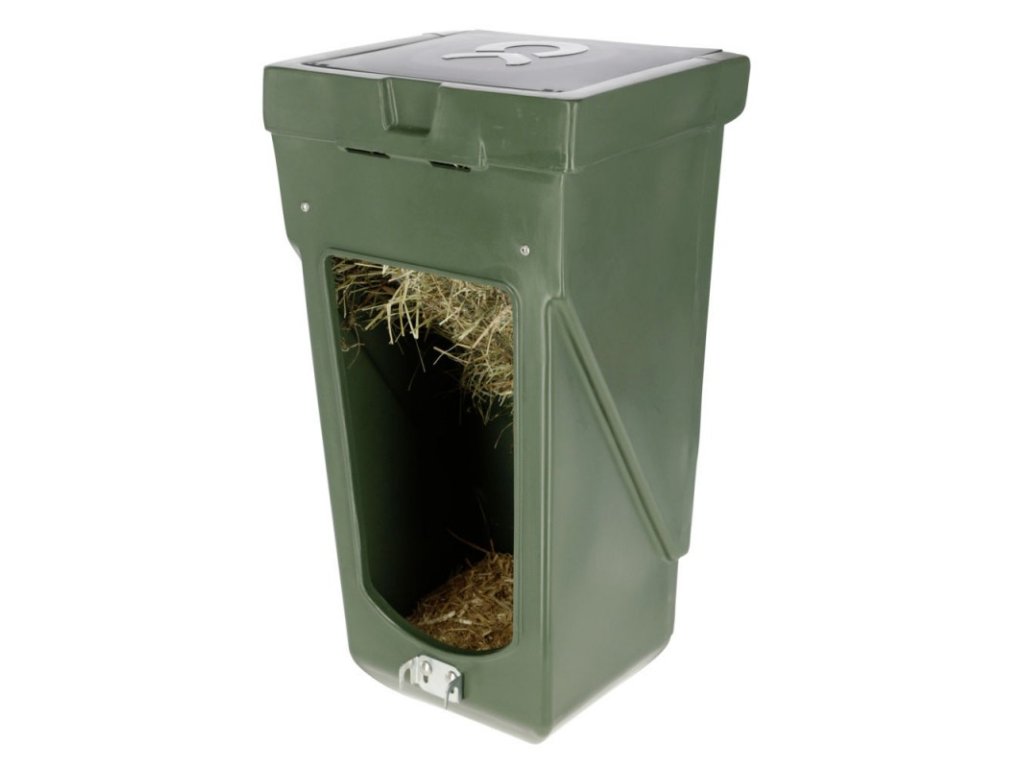 Feed Box Combo je vyroben z pevného plastového materiálu s pozinkovanými jeslemi na seno v horní části. Automat vhodný pro použití v období přechodu z koncentrovaného krmiva na suché. Krmítko je vybaveno krytem, který chrání krmivo před deštěm.