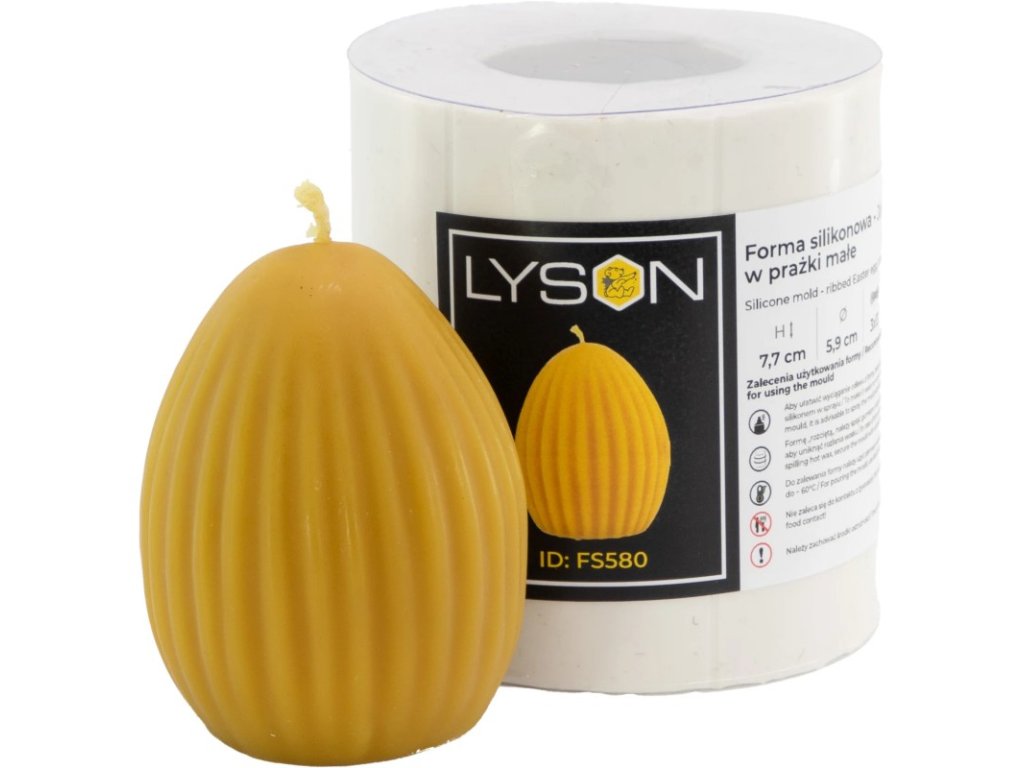 Forma silikonová – Malé pruhované vejce je praktická a flexibilní forma na svíčky určená pro chovatele včelaře a tvůrčí osoby vyrábějící svíčky a voskové dekorace; ideální pro ruční výrobu jedinečných odlitků z včelího vosku, sojového vosku i epoxidové pryskyřice, přičemž podporuje svíčková forma výrobní postup zpracování s jednoduchým použitím.