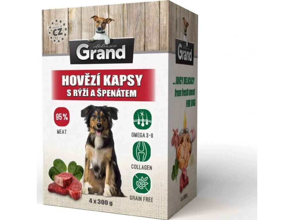 GRAND deluxe hovězí, rýže a špenát - kapsička pro psy 4x300g