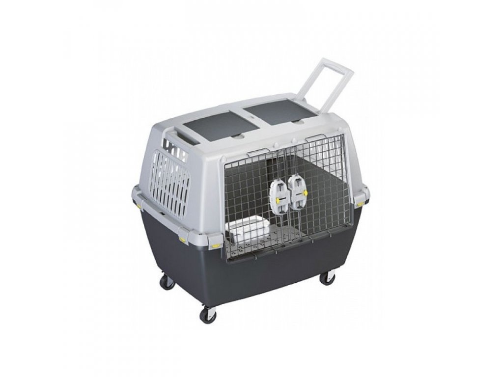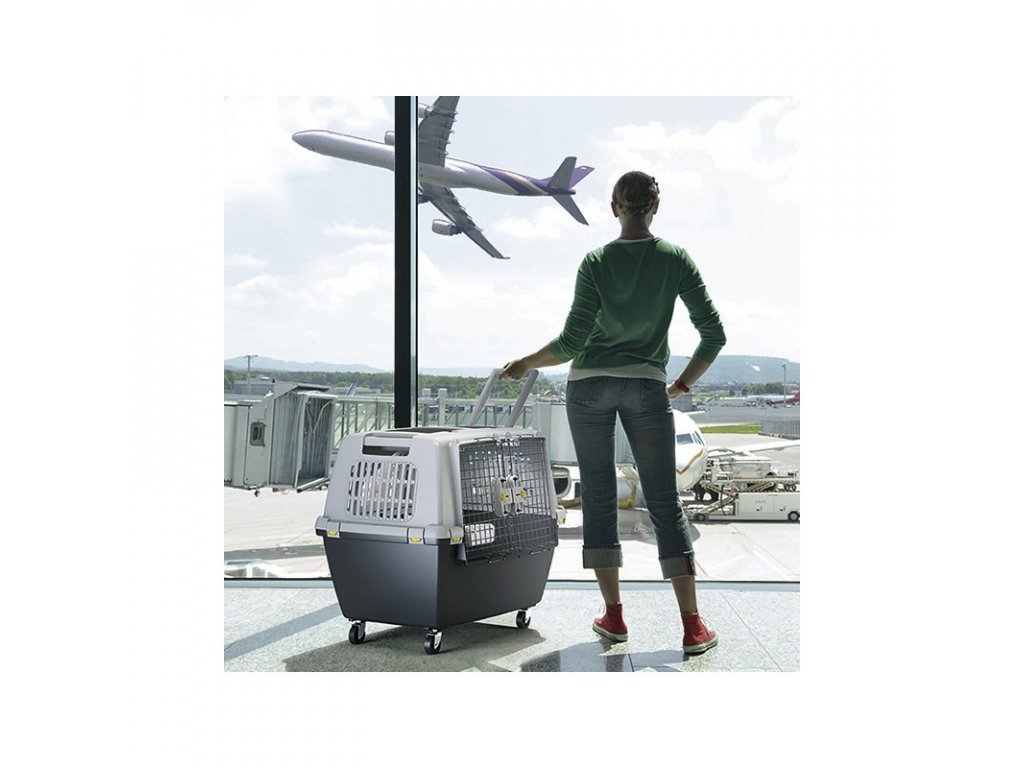 Originální velká přepravka na psa s kolečky, madlem a miskou a uzamikatelnými dvířky- GULLIVER TOURING. Tento transportní box - přenoska na psa je schválená mezinárodní leteckou asociací IATA pro transport do letadla.