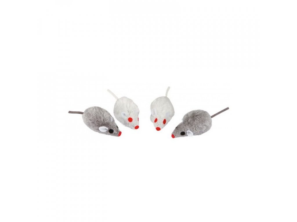 Hračka pro kočku – čtyři chlupaté myšky v bílé a šedé barvě jsou klasické kočičí hračky. Myšky chrastí a jsou napuštěné catnipem pro větší stimulaci vaší kočky ke hře.