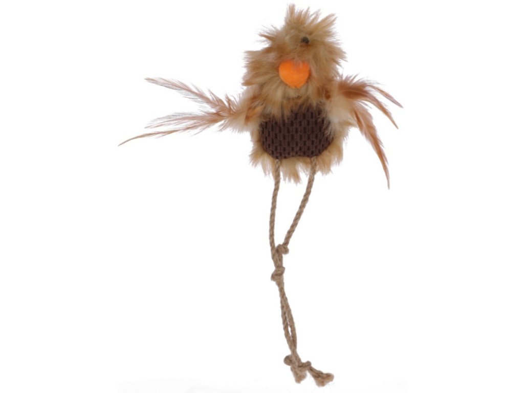 Hračka pro kočky Divoký pták, s catnipem, hnědá