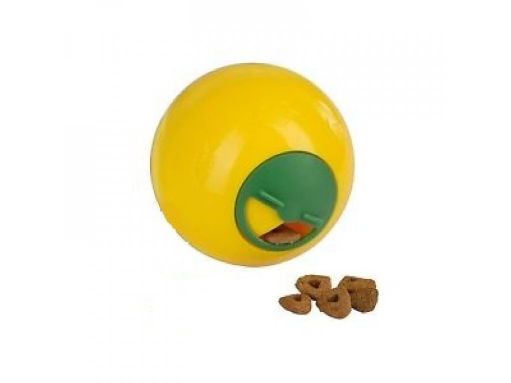 Hračka pro kočky interaktivní - míček na pamlsky 7,5 cm, žlutý