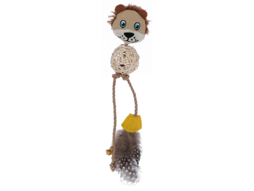 Kočičí hračka Safari Lev – pro divoké dobrodruhy! Robustní a roztomilý lev z ratanu bude vaší kočce tím nejlepším parťákem pro hraní. Skutečná pírka a malá rolnička probudí její lovecké instinkty a zajistí hodiny zábavy. Ratanové tělo je nejen odolné, ale také podporuje zdraví zubů při kousání. Kočičí šanta navíc dodá hře ten správný šmrnc.