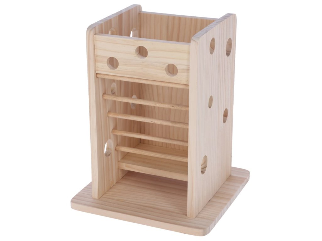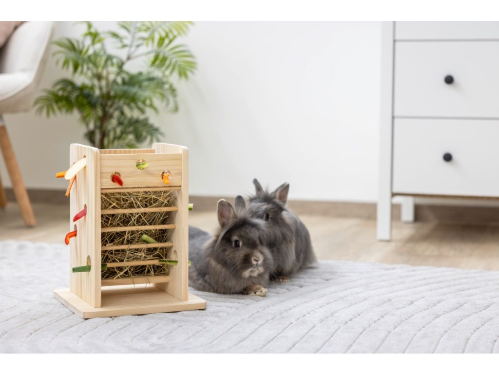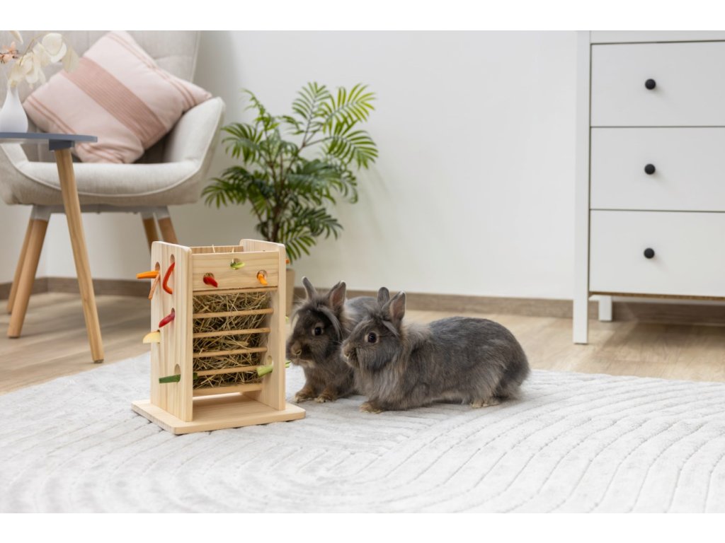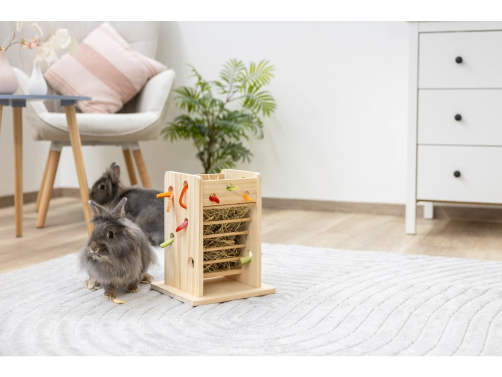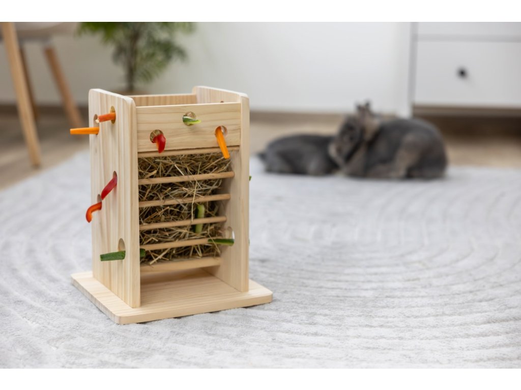 Dřevěná věž na seno a zeleninu od značky Kerbl spojuje funkčnost a přirozenou zábavu pro vaše mazlíčky. Tento 2v1 design umožňuje podávat čerstvé seno i zeleninu hygienicky, bez kontaktu s podestýlkou. Díky otvorům různých velikostí musí zvířata potravu „vydobýt“, což stimuluje jejich přirozené instinkty a zároveň podporuje zdravé trávení.