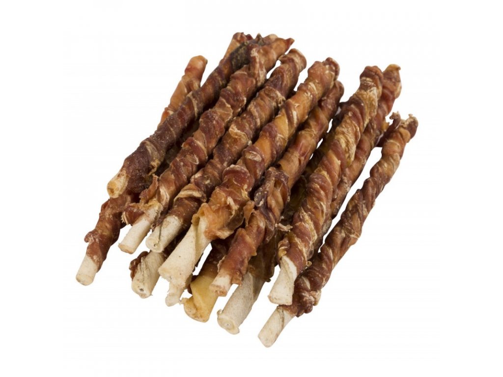 Pamlsek pro psy - tyčinky z točené lisované hovězí kůže. Jsou potaženy sušeným bůvolím masem. Napomáhají péči o zuby a posilují žvýkací svaly.