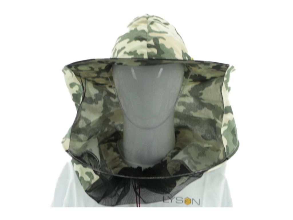 Klobouk včelařský moro (vzadu plátno) je navržen pro každodenní práci u úlů, kontrolu rámků, medobraní i převoz úlů. Díky nenápadnému moro vzoru je vhodný pro práci v terénu i ve vyšší trávě. Kukla s jemnou sítí poskytuje dobré panoramatické vidění při maximální ochraně obličeje a krku. Zadní část z plátna zvyšuje komfort v teplejším počasí a při dlouhém pohybu. Ideální doplněk k včelařským kombinézám, rukavicím a mikinám z nabídky "ŁYSOŃ".