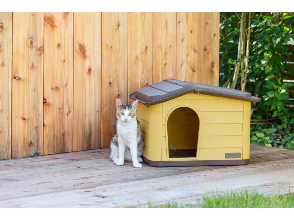 Tip: Umístěte boudu do závětří nebo pod přístřešek, pro větší pohodlí doplňte o měkkou podložku či dečku. Snadno se čistí vodou a mýdlovým roztokem – ideální volba pro čistotu i udržitelnost.