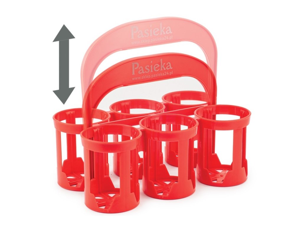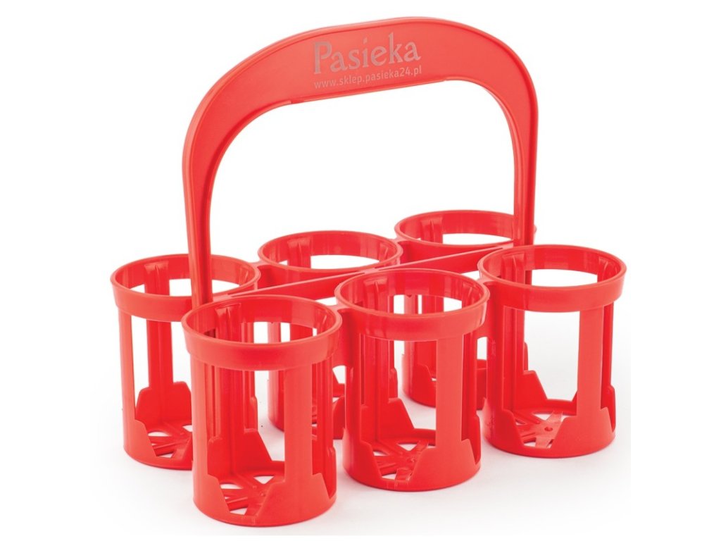 Náš nový výrobek je navržen tak, aby přeprava vysokých nádob s malým průměrem byla pohodlná a bezpečná Červené, estetické košíky jsou řešením pro výrobce medového likéru, piva a medoviny. Výborně se hodí také pro včelařská setkání, při nichž se likéry přenášejí na stůl. Oceníte je také při přepravě autem (lahve se nepřevrhnou ani nerozbijí ani při prudkých manévrech) a rychlém přenášení výrobků z auta do stánku. Velikost otvorů umožňuje bezpečnou přepravu i menších sklenic (např. 315 ml) Košík na láhve je vyroben z plastu a je určena k opakovanému použití. Má hluboké otvory pro lahve, takže z nich nevypadávají likéry, piva ani medovina. Díky odděleným prohlubním zabraňuje nádoba vzájemnému tření a nárazům sklenic, čímž je chrání před rozbitím.
