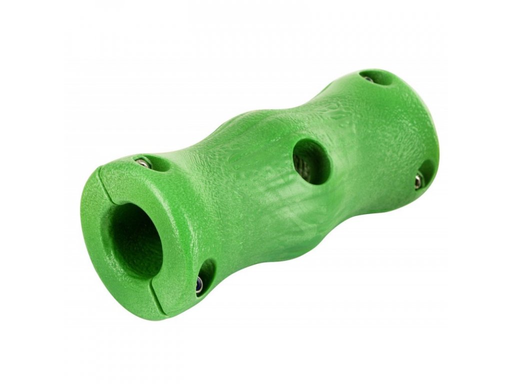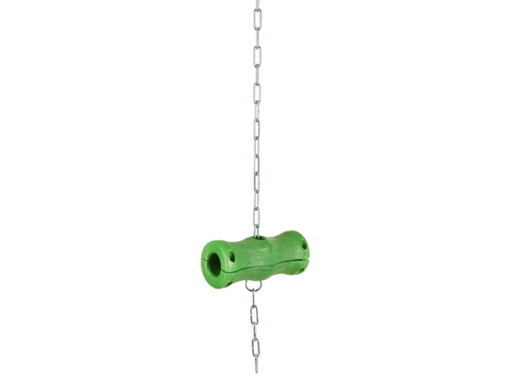 Antistresový válec na okusování proti agresivitě. Z hygienicky nezávadného dvojitého plastového materiálu v zelené barvě. K montáži na hrazení o průměru 1“ (cca 2,6 cm) nebo k zavěšení na řetěz.
