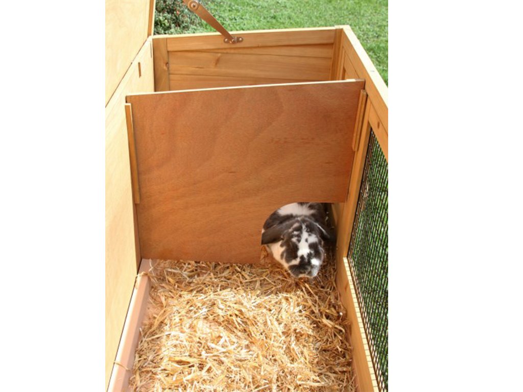 Čištění králíkárny zvládnete během pár minut. Práci velmi usnadní vyjímatelný plastový trusník, který stačí z králíkárny vysout, vyčistit a vrátit zpět. Při údržbě králíkárny jistě oceníte také odklápěcí střechu s nepromokavým povrchem.