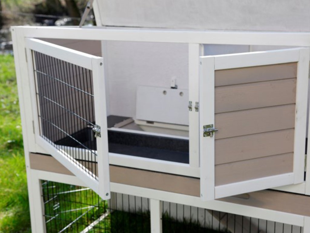 Čištění králíkárny zvládnete během pár minut. Práci velmi usnadní výsuvný plastový trusník, který stačí z králíkárny vysout, vyčistit a vrátit zpět.