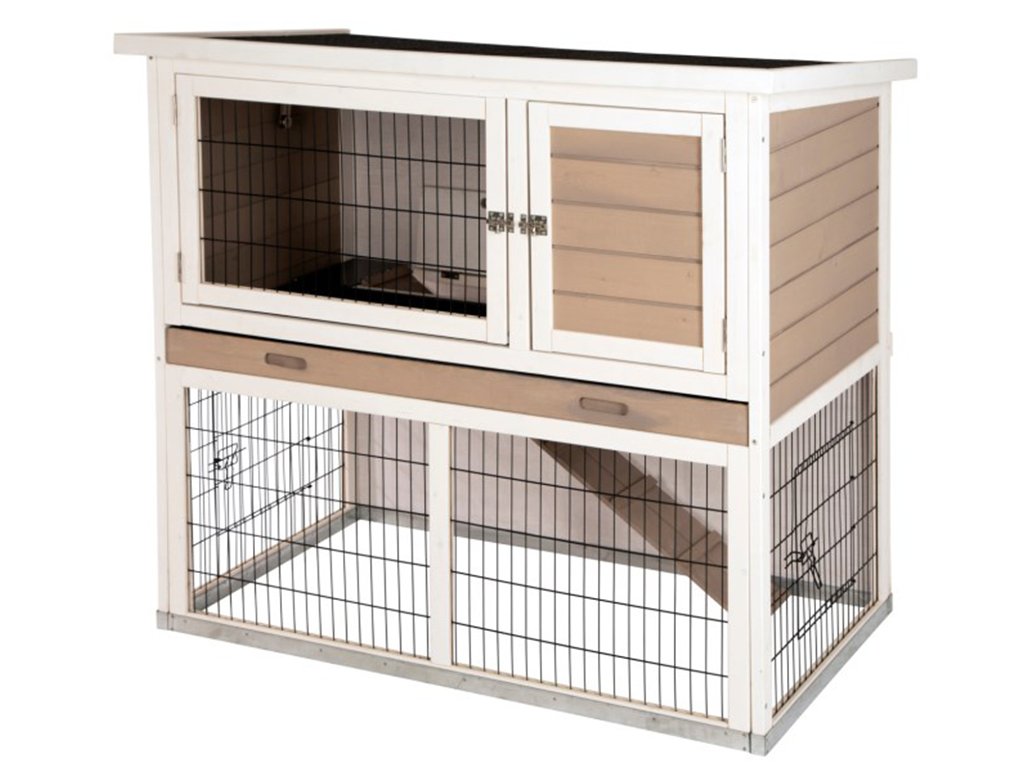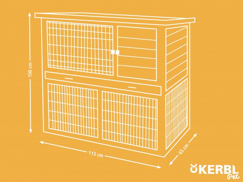 Dřevěná králíkárna pro králíky, morčata, činčily a jiné hlodavce o rozměrech 115×65×100 cm. Jedná se o praktickou králíkárnu s výběhem, která je vybavena vyjímatelným trusníkem pro snadné čistění. Bezproblémový přístup do králíkárny zajišťují přední a boční dvířka.Králíkárnu snadno složíte pomocí přehledného obrázkového návodu.