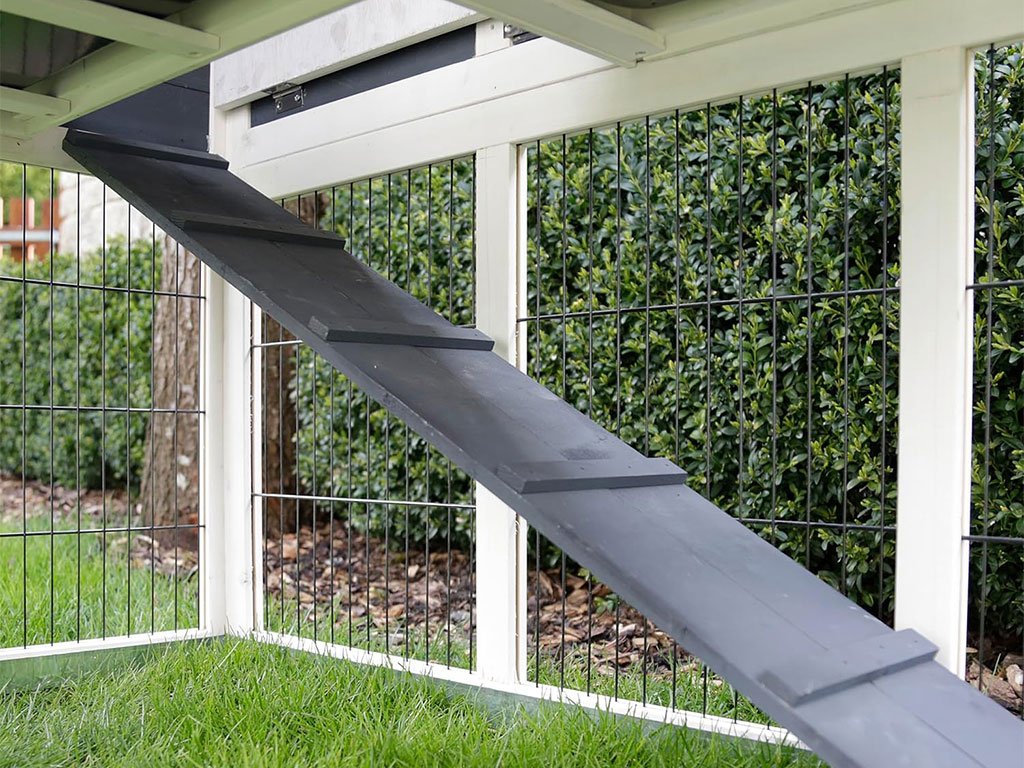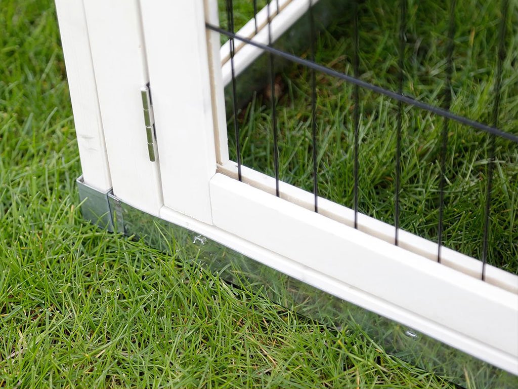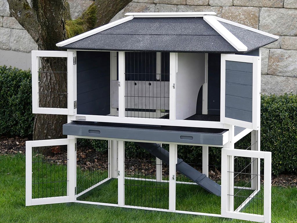 Králíkárna je vybavena čtyřmi samostatnými dvířky. Na samotné králikárně najdete dvířka mřížovaná do většího oddílu a dvířka dřevěná plná do odpočinkového oddílu. Na výběhu se nacházejí další dvoje mřížovaná dvířka. Králikárna má pevné mřížky s povrchem odolným proti okusu a kovovým spodním rámem proti vlhkosti. Králík, morče nebo jiní hlodavci budou mít v králíkárně dostatek prostoru a pohodlí. Váš mazlíček může odpočívat uvnitř králíkárny, která mu nabídne příjemné soukromí a přítmí nebo může trávit čas ve venkovním výběhu na zelené trávě. Pokud budete chtít zvířata od sebe oddělit, můžete uzavřít dvířka v podlážce králikárny vedoucí na rampu do výběhu.