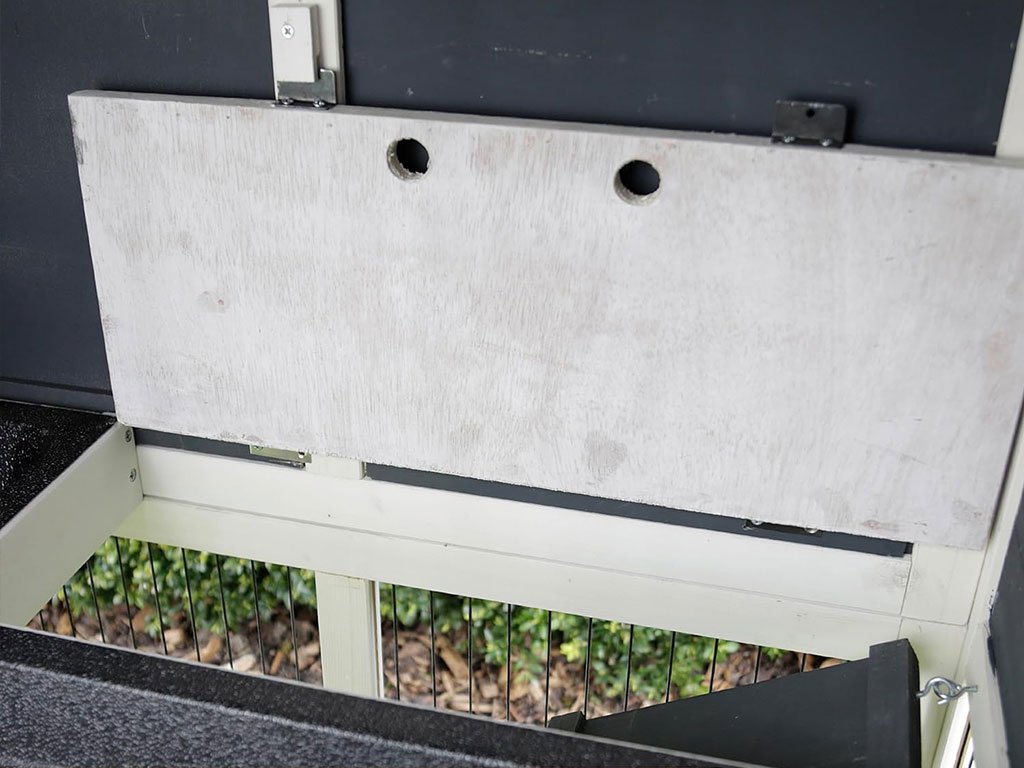 Čištění králíkárny zvládnete během pár minut. Práci velmi usnadní výsuvný plastový trusník, který stačí z králíkárny vysout, vyčistit a vrátit zpět.