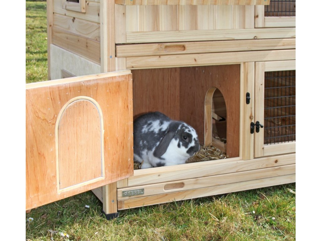 Tyrol Alpin představuje špičkovou zateplenou dvoupatrovou králíkárnu v elegantním alpském stylu. Je navržena jako celoroční domov pro králíky a morčata – s izolovaným spodním patrem, integrovaným stojanem na seno a odolnou střechou proti dešti i sněhu. Kvalitní dřevěná konstrukce, snadná údržba a stylový vzhled z ní dělají ideální volbu pro náročné chovatele.