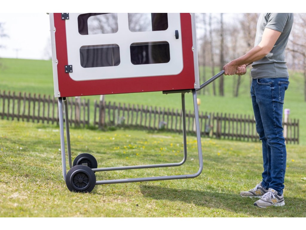Mobilní konstrukce s kovovým rámem, dvěma koly a madlem umožňuje pohodlné zvedání a přesouvání kurníku po zahradě. Kdykoli tak slepicím dopřejete čerstvou trávu, zatímco původní plocha má čas na regeneraci.
