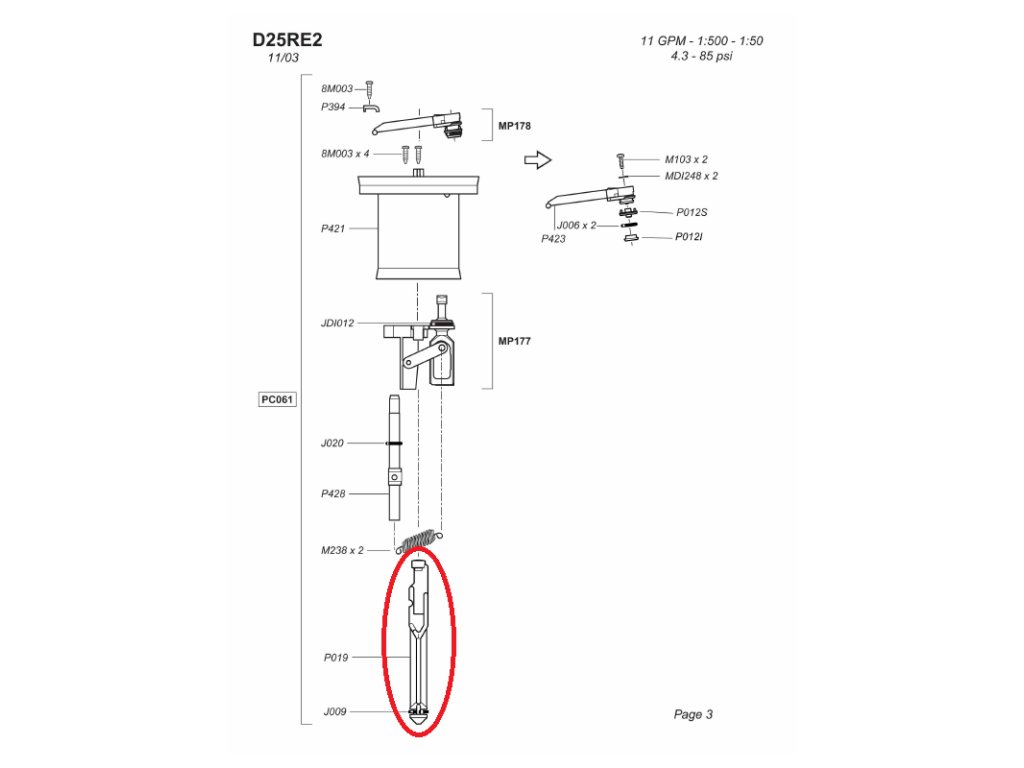 Medikátor Dosatron D25RE2 0,2 - 2% náhradní díly, píst plunžrový
