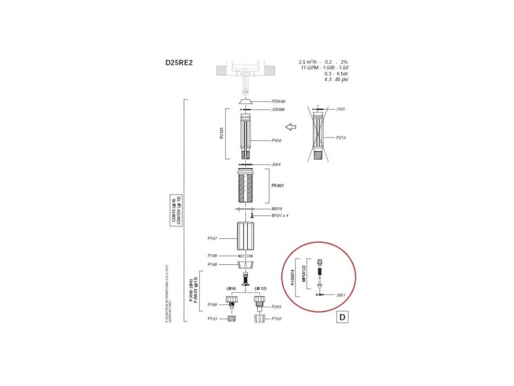 Náhradní díly pro dávkovací čerpadlo D25RE2 od prověřeného výrobce Dosatron.