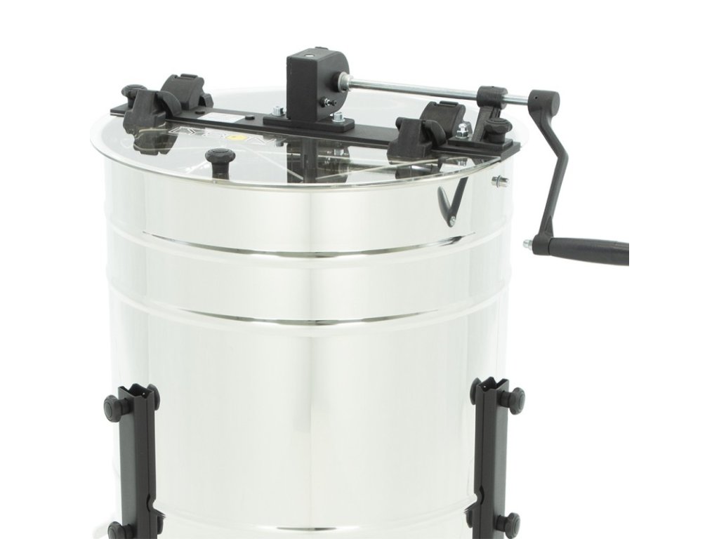 Horní nosník a nohy medometu jsou opatřeny práškovou barvou, která zvyšuje jejich odolnost proti opotřebení. Průhledné plexisklové víko (3 mm) umožňuje sledovat průběh vytáčení bez přerušení práce. Kuželovitě tvarované dno zajišťuje plynulý odtok medu k výpusti a snadné čištění po skončení práce.