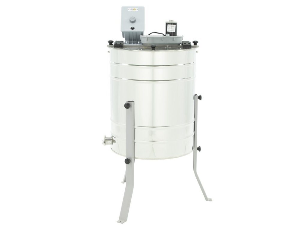 Malý, ale výkonný – to je elektrický tangenciální medomet Ø500 mm z řady MINIMA LINE. Vhodný pro začátečníky, hobby včelaře i menší včelíny. Díky univerzálnímu koši pojme různé typy rámků včetně českého 39x24.
