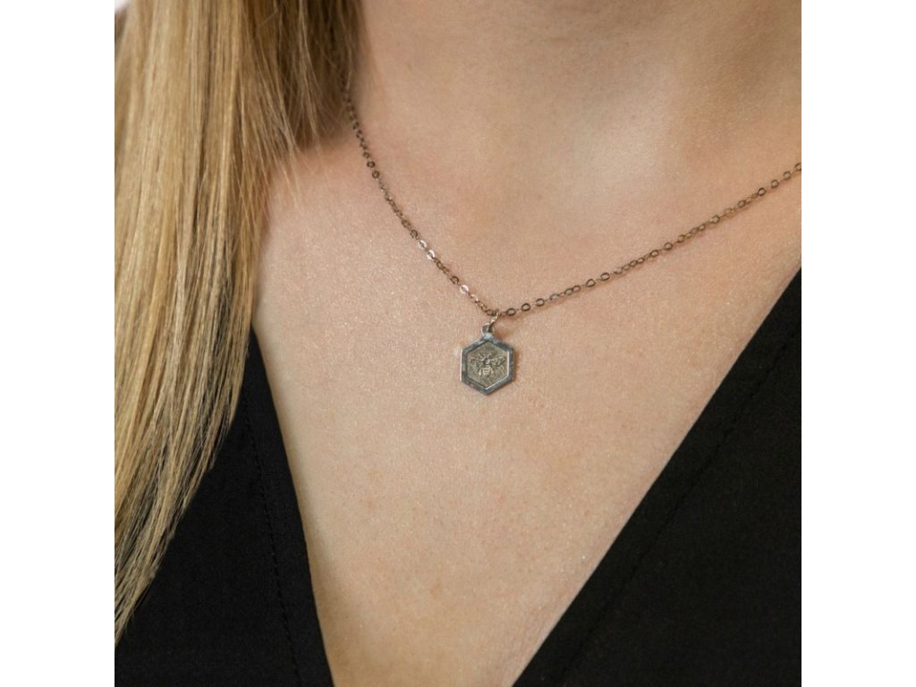 Náhrdelník s přívěskem včela na hexagonu - zlacené stříbro
