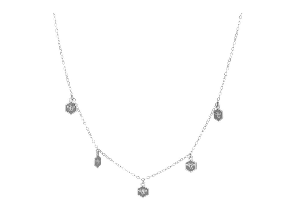 Náhrdelník s přívěsky se včelami na hexagonu - rhodiované stříbro