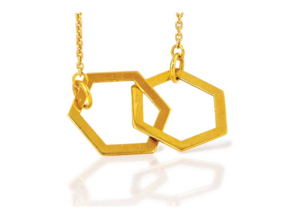 Náhrdelník - včelí buňka - zlacený s prvky stříbra