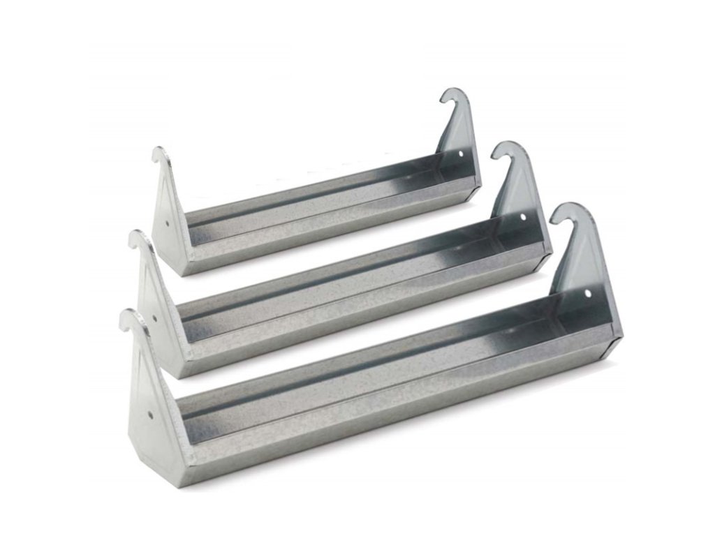 Závěsná napáječka pro drůbež z pozinkovaného plechu. Jednoduchý a praktický napájecí žlab k zavěšení na pletivo.