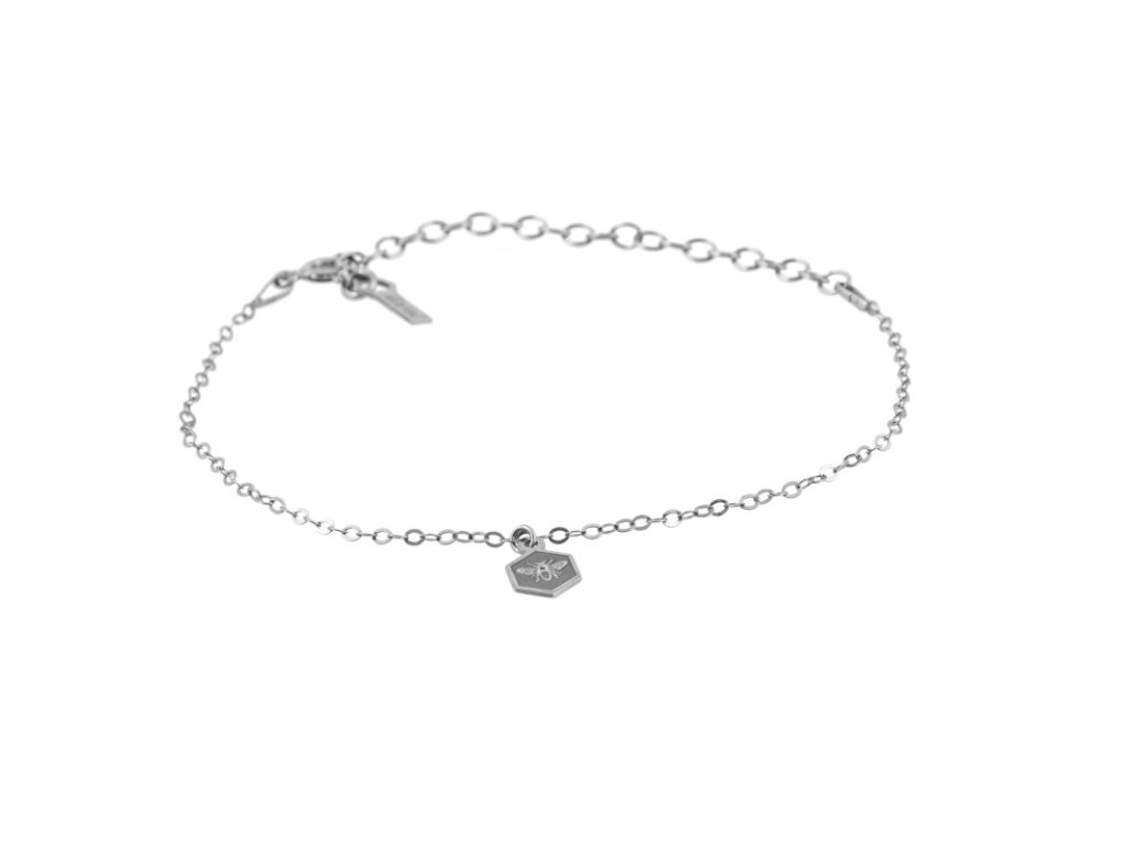 Náramek s přívěskem včela na hexagonu – rhodiované stříbro