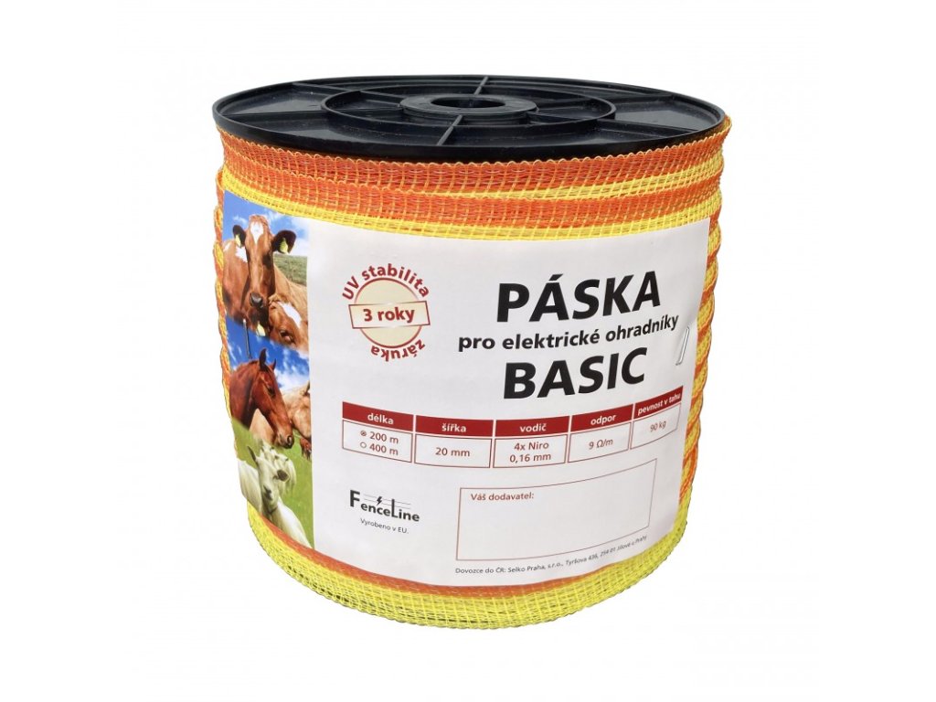 Ohradníková páska BASIC 20 mm je ideální volbou pro budování krátkých a středně dlouhých elektrických ohradníků. O spolehlivý přenos elektrických impulsů se starají 4 nerezové vodiče (Niro) o průměru 0,16 mm. Díky kontrastní žluto-oranžové barvě je páska dobře viditelná i na větší vzdálenost.