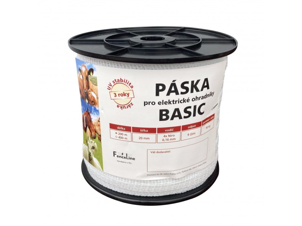 Pásky BASIC jsou určeny pro krátké ohrady a mobilní oplocení. Pro delší systémy doporučujeme pásky STANDARD nebo PREMIUM s měděnými pocínovanými vodiči, které mají ještě nižší odpor a jsou vhodné pro dlouhé ohrady.