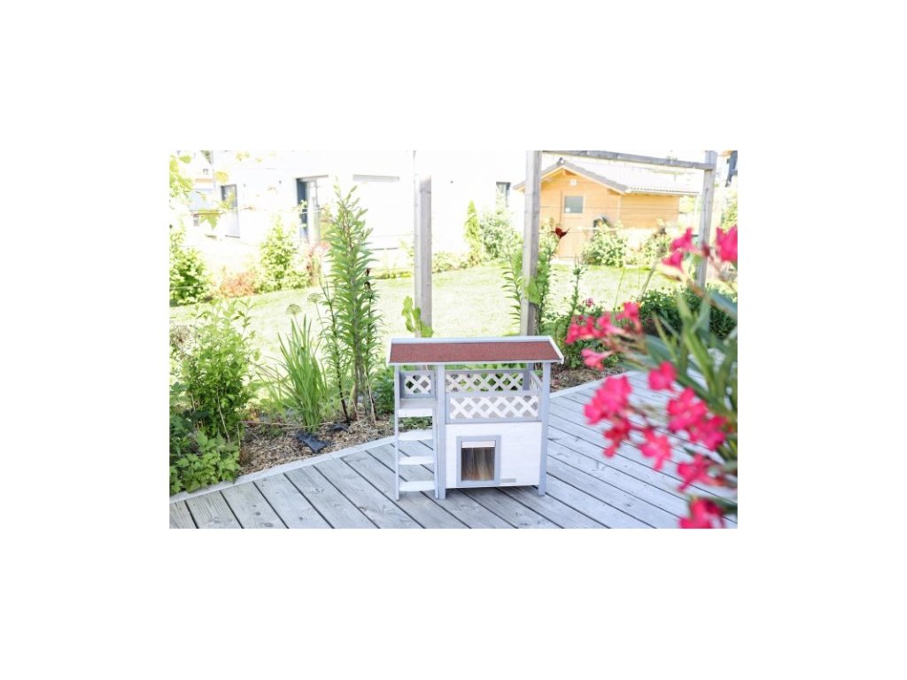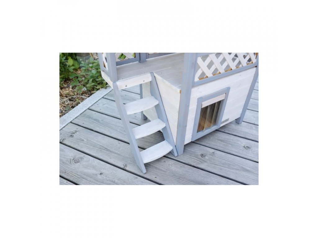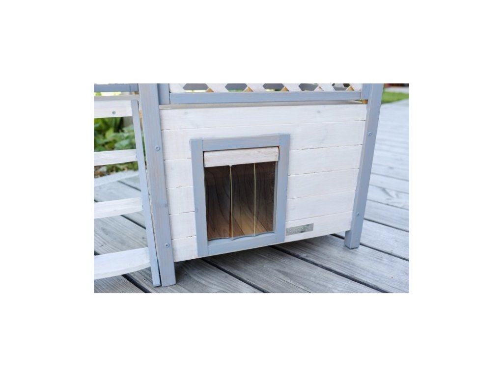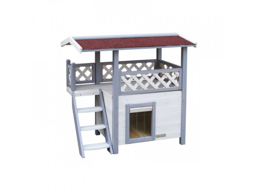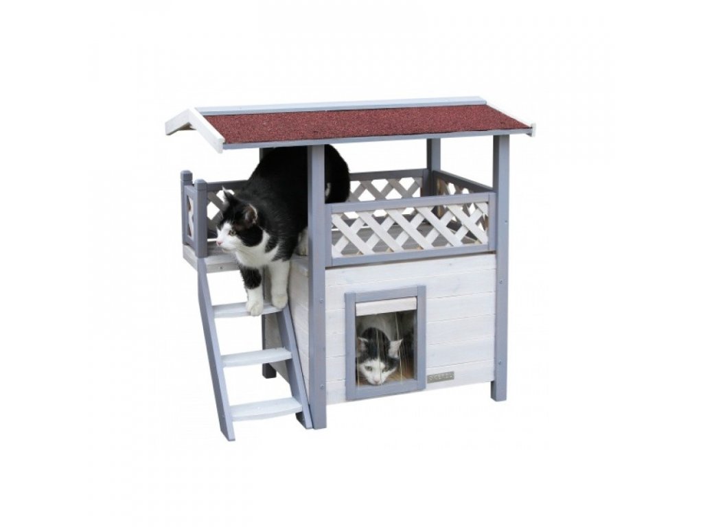 Ontario je praktický a elegantní domeček pro kočky, který kombinuje robustnost, ochranu proti počasí a pohodlí. Terasa se schůdky poskytuje výhled a prostor ke hře, lamelový vstup chrání před větrem a chladem. Skvěle se hodí na zahradu, balkon i k domu.