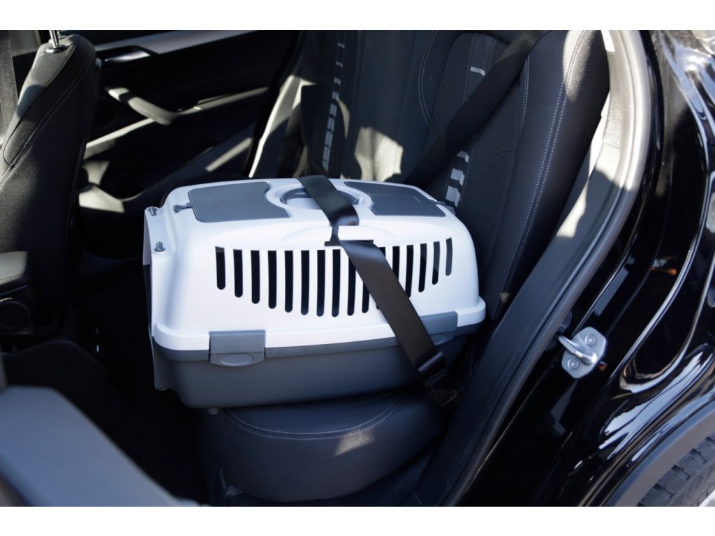 Přepravku lze pomocí bezpečnostního pásu připevnit na sedadlo automobilu, čímž se zvyšuje bezpečnost při jízdě. Plastová dvířka umožňují dobré větrání a snadný přístup ke zvířeti.