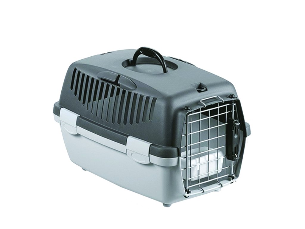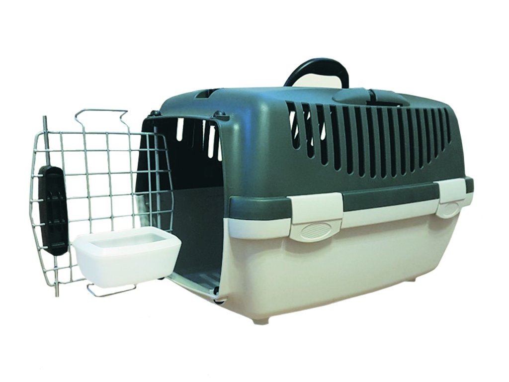Pro psy a kočky do 6kg, víko a vana se spojují klipsy, kovová přední dvířka se zámkem, nastavitelné pravé nebo levé otevírání dvířek, rukojeť pro snadné přenášení přepravky, dva úchyty pro bezpečnostní pás v autě, miska 500 ml s okraji proti vylévání, vnitřní rozměry 45x29x26,5cm, vnější rozměry 48x32x31cm.