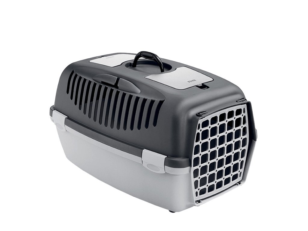 Pro psy a kočky do 8kg, víko a vana se spojují klipsy, přední dvířka se 4 zámky, nastavitelné pravé nebo levé otevírání dvířek, rukojeť pro snadné přenášení přepravky, úložný box na vrchu přepravky, uzavíratelný manipulační otvor na vrchu přepravky, dva úchyty pro bezpečnostní pás v autě, vnitřní rozměry 51,5x32,5x30cm, vnější rozměry 55x36x35cm.