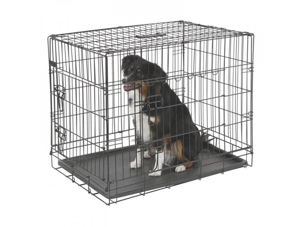 Transportní klec na psa, kovová se dvěma dvířky. Vhodná také jako klec na výstavy, do hotelu nebo na chatu.