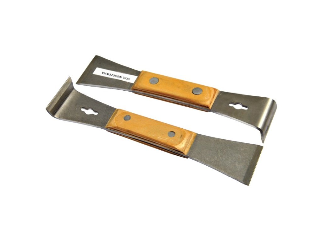 Materiál: pozinkovaná ocel; Konstrukce: pevná, ergonomicky tvarovaná rukojeť; Určení: rozpěrák, včelařský rozpěrák, doplněk k včelařskému dlátu; Kvalita: precizní výroba pro profesionální i hobby použití.