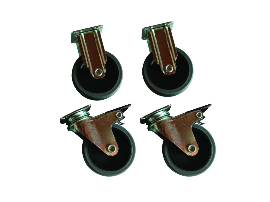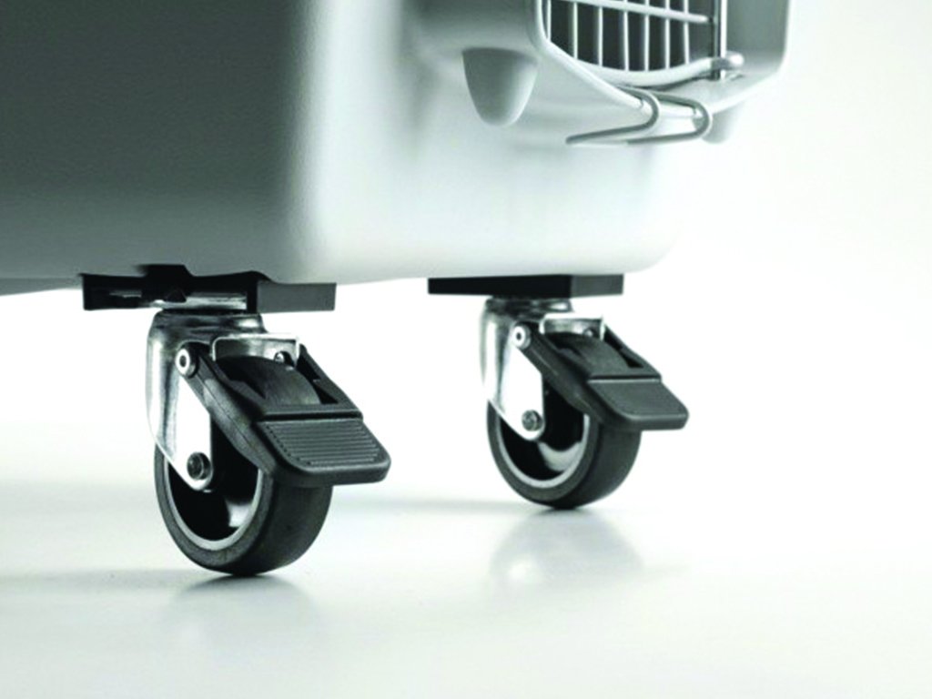 Sada koleček pro přepravní boxy GULLIVER 4, 5, 6, 7 a TOURING, pogumovaný protiskluzový povrch, 2 kolečka otočné s brzdou, snadná montáž držáku koleček dle návodu, kolečka lze z držáku sundat a uschovat.